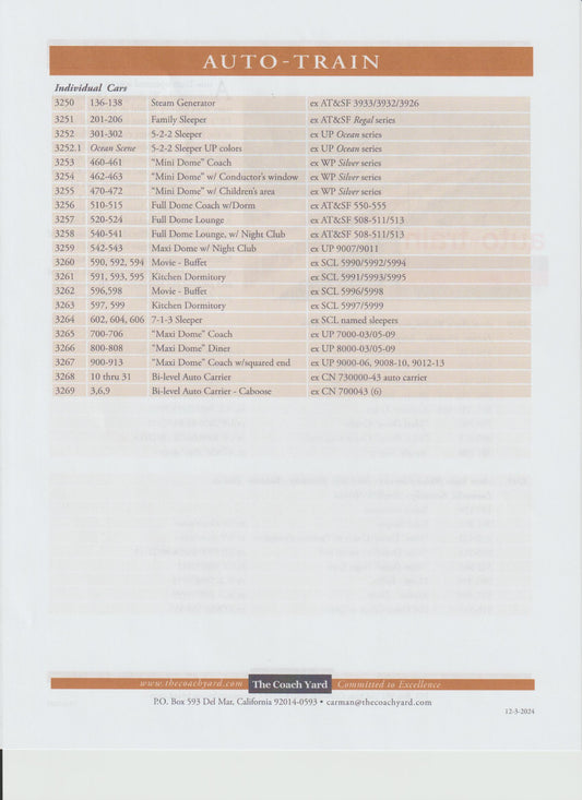 CY-3200 Coach Yard Auto-Train 8-Car Consist and Additional Cars