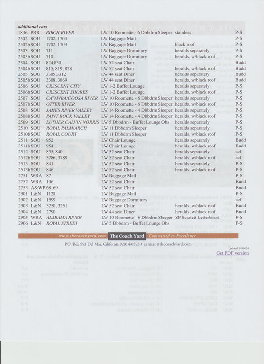 CY-2500/2501 Coach Yard 1949 Southern "The Crescent"/1970-1979 "Southern Crescent" and Additional Cars