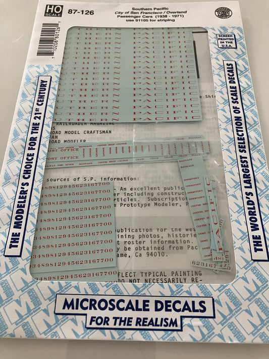 MC87-126 Microscale Water-slide Decals for Southern Pacific "CityofSanFrancisco/Overland"