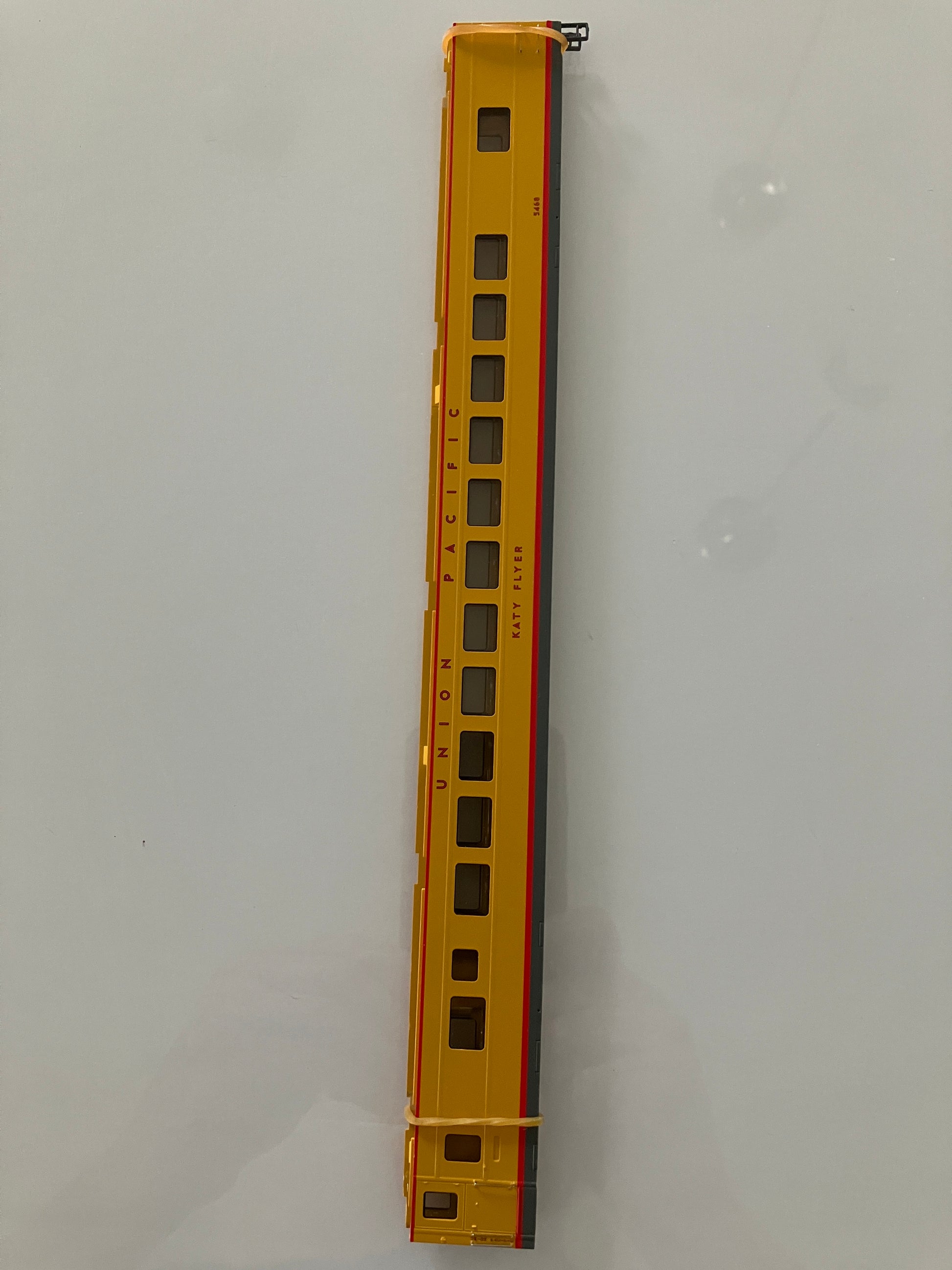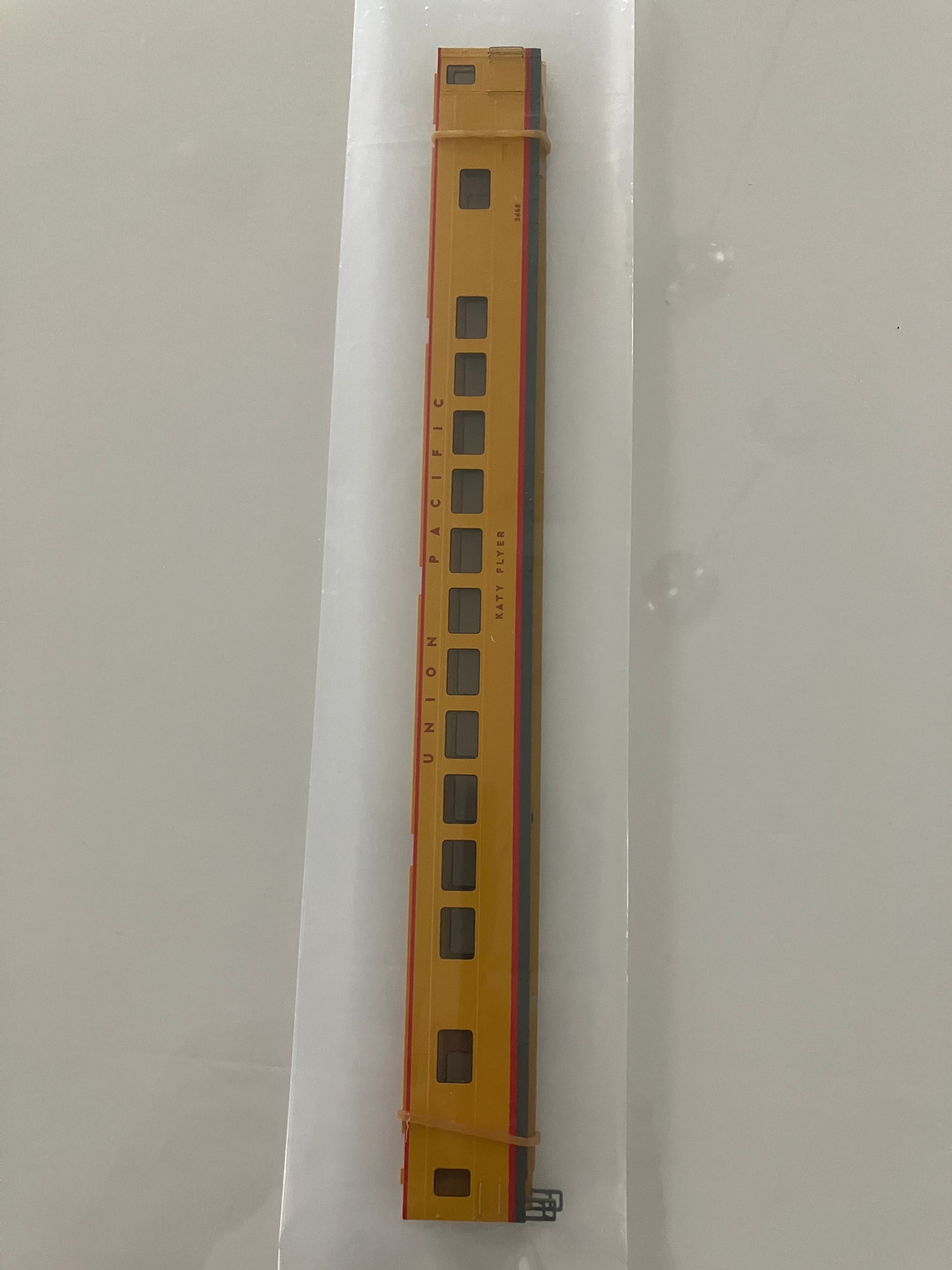 Union Pacific carsides for "Katy Flyer" Heritage Car #5468. Complete with window glazing and grabs and ladders. One pair, used with molded on pushclips.