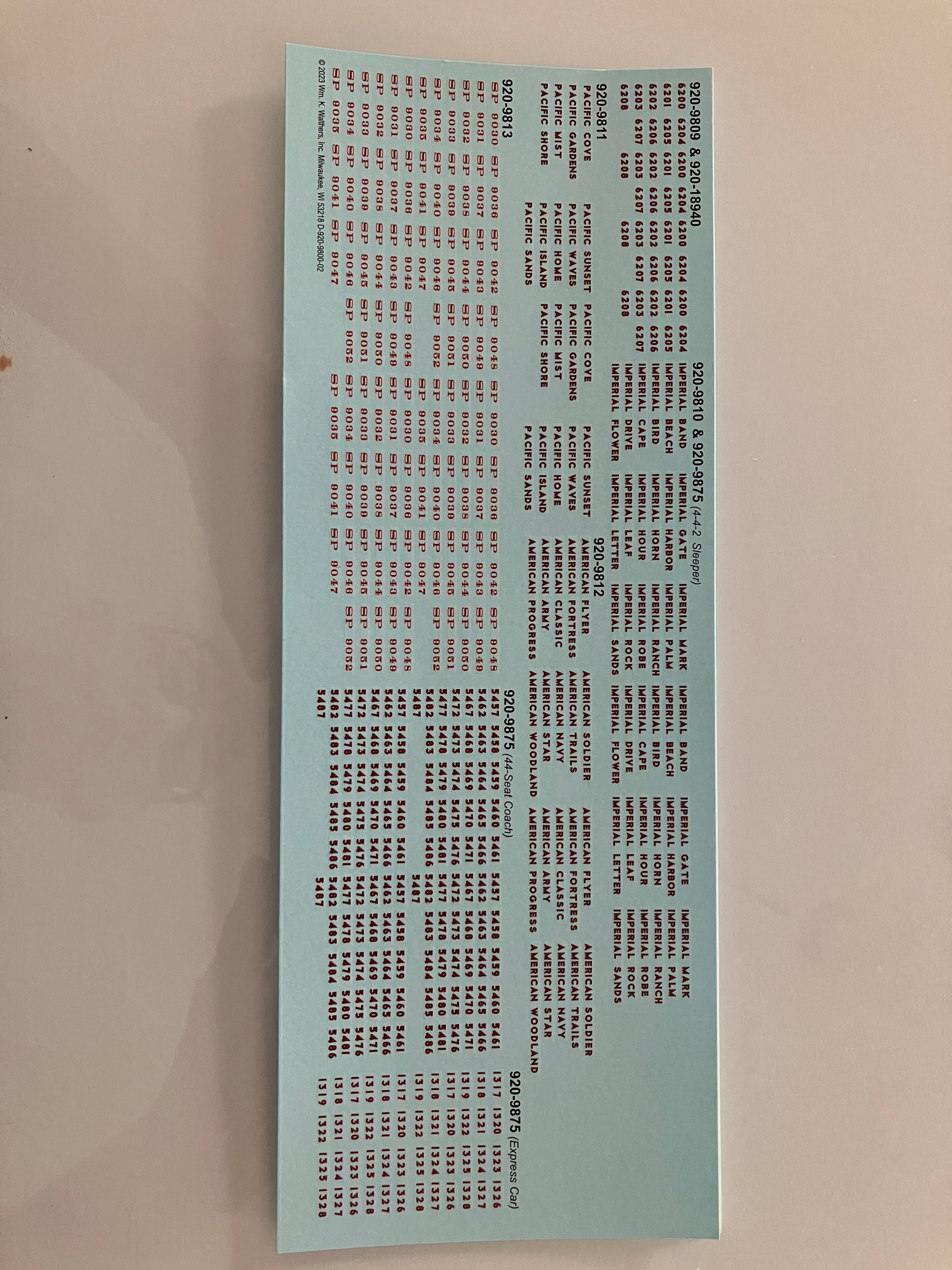 LSC009 Walther's Water-slide Decals for UP/SP Streamlined Passenger Cars