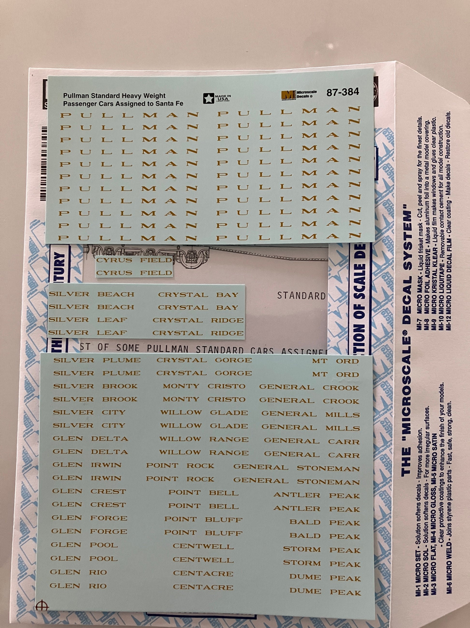 MC87-384 Microscale Water-slide Decals for Pullman HW Sleeping Cars Assigned to Santa Fe