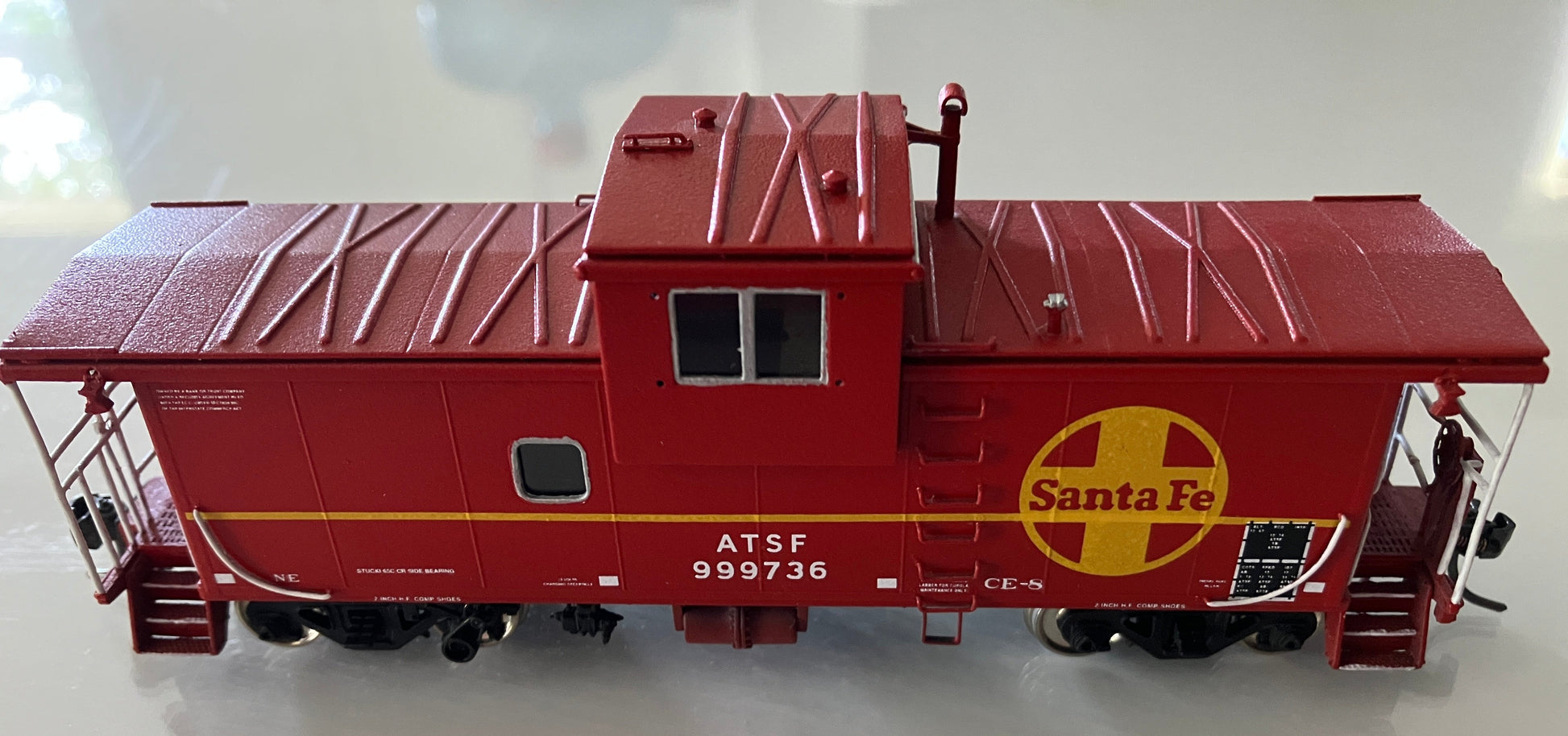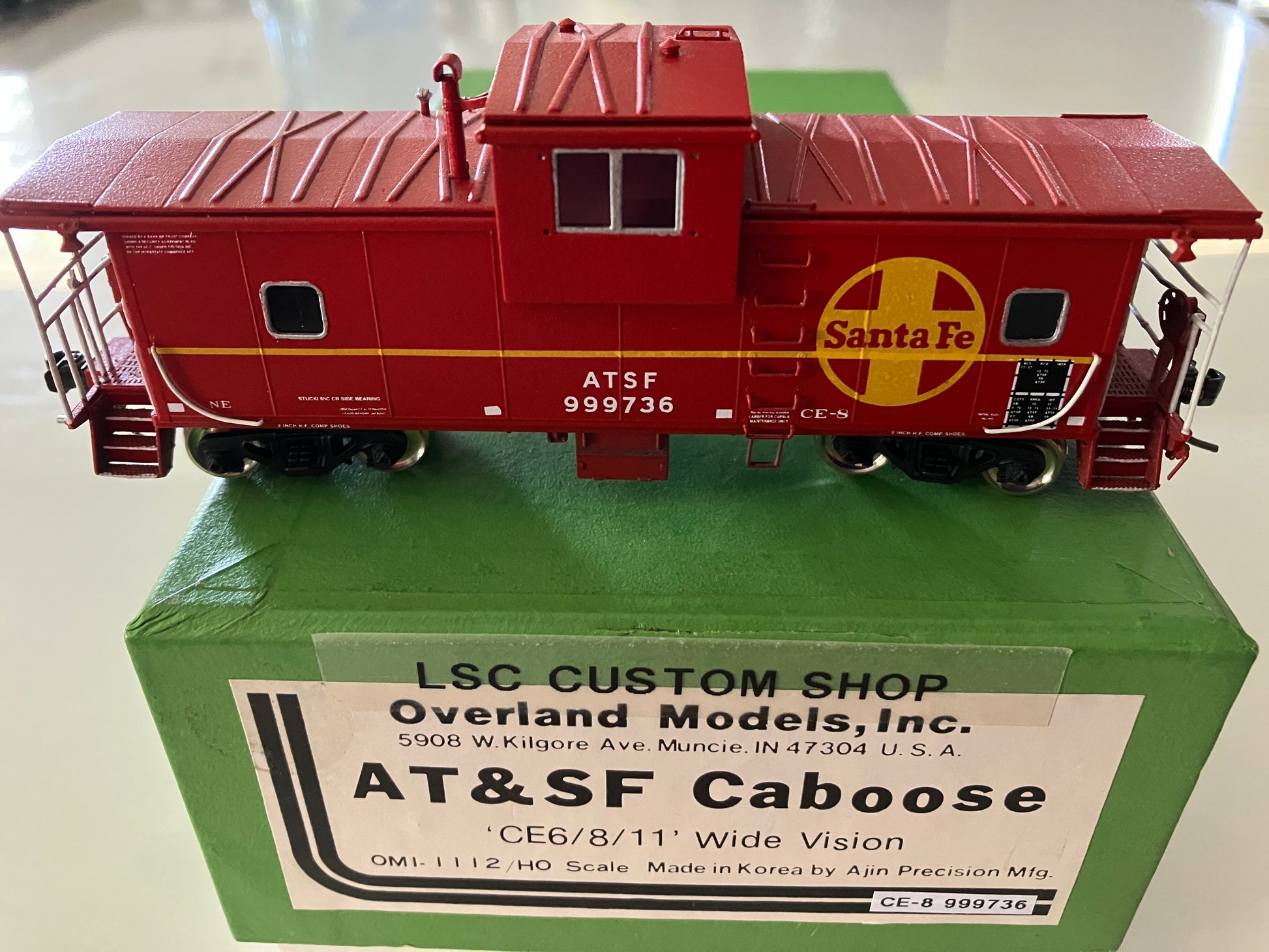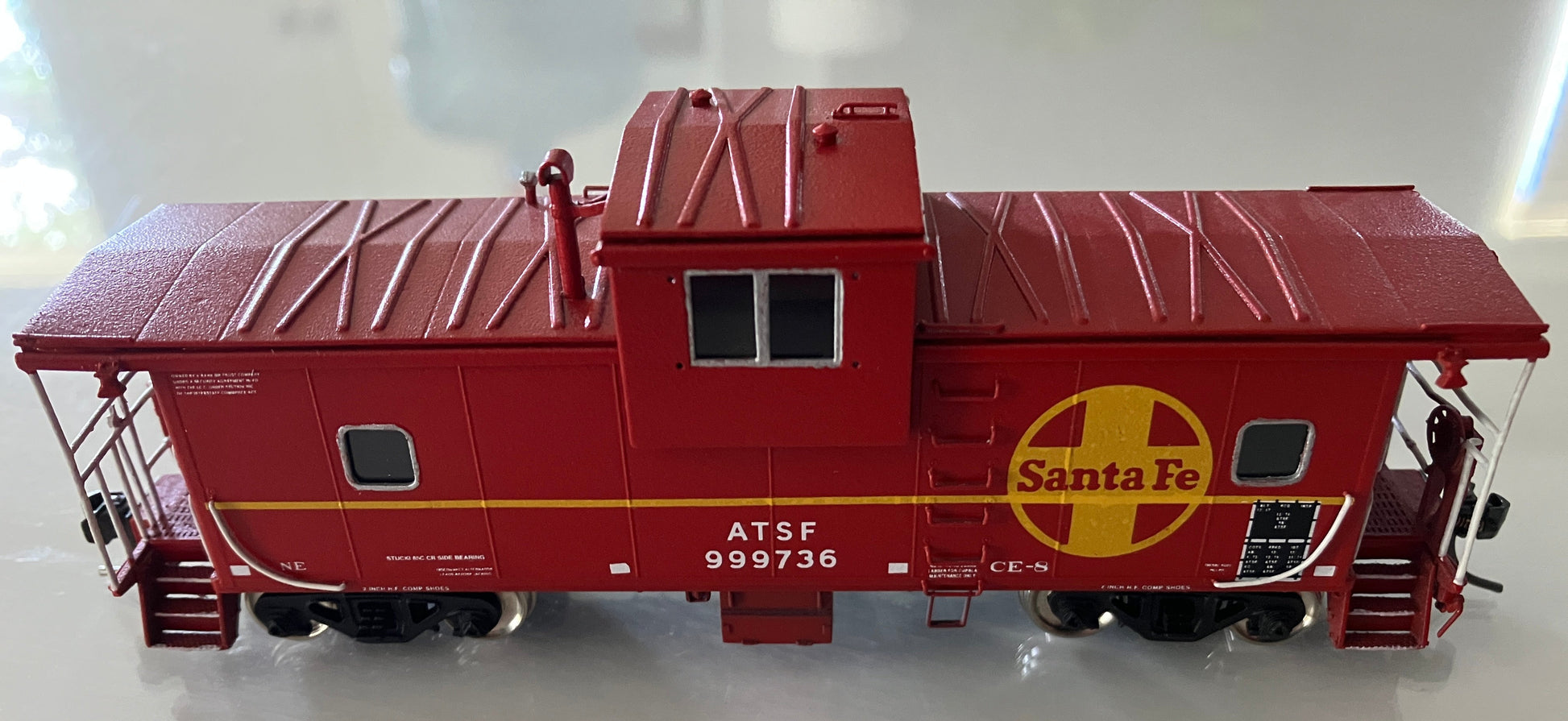 Santa Fe Wide Vision CE-8 Caboose with window glazing, Kadee couplers, metal wheelsets, custom painted by LSC Custom Shop |