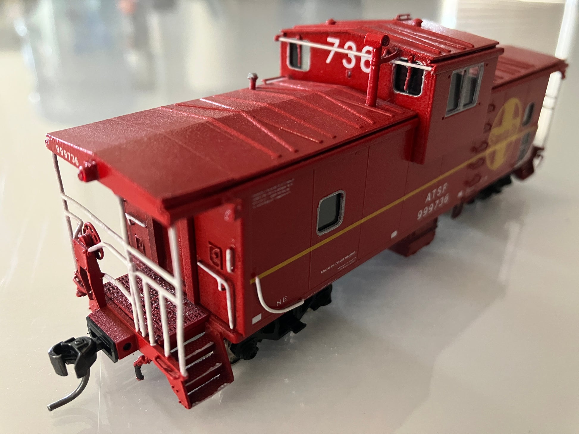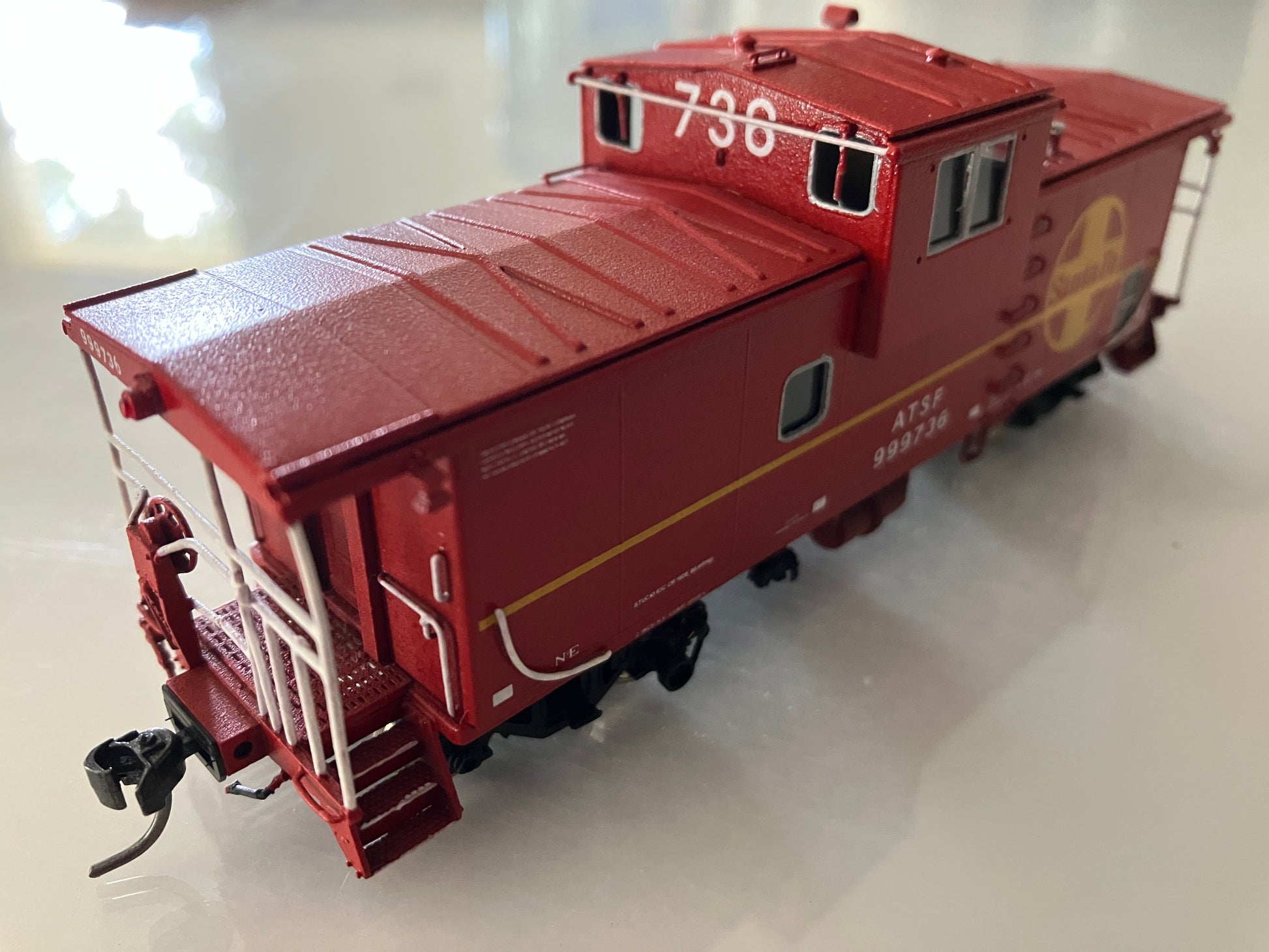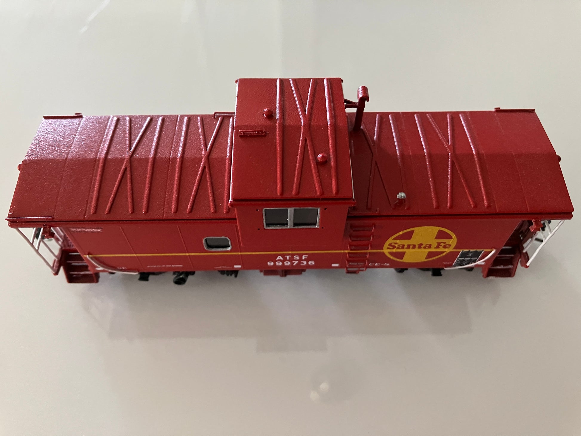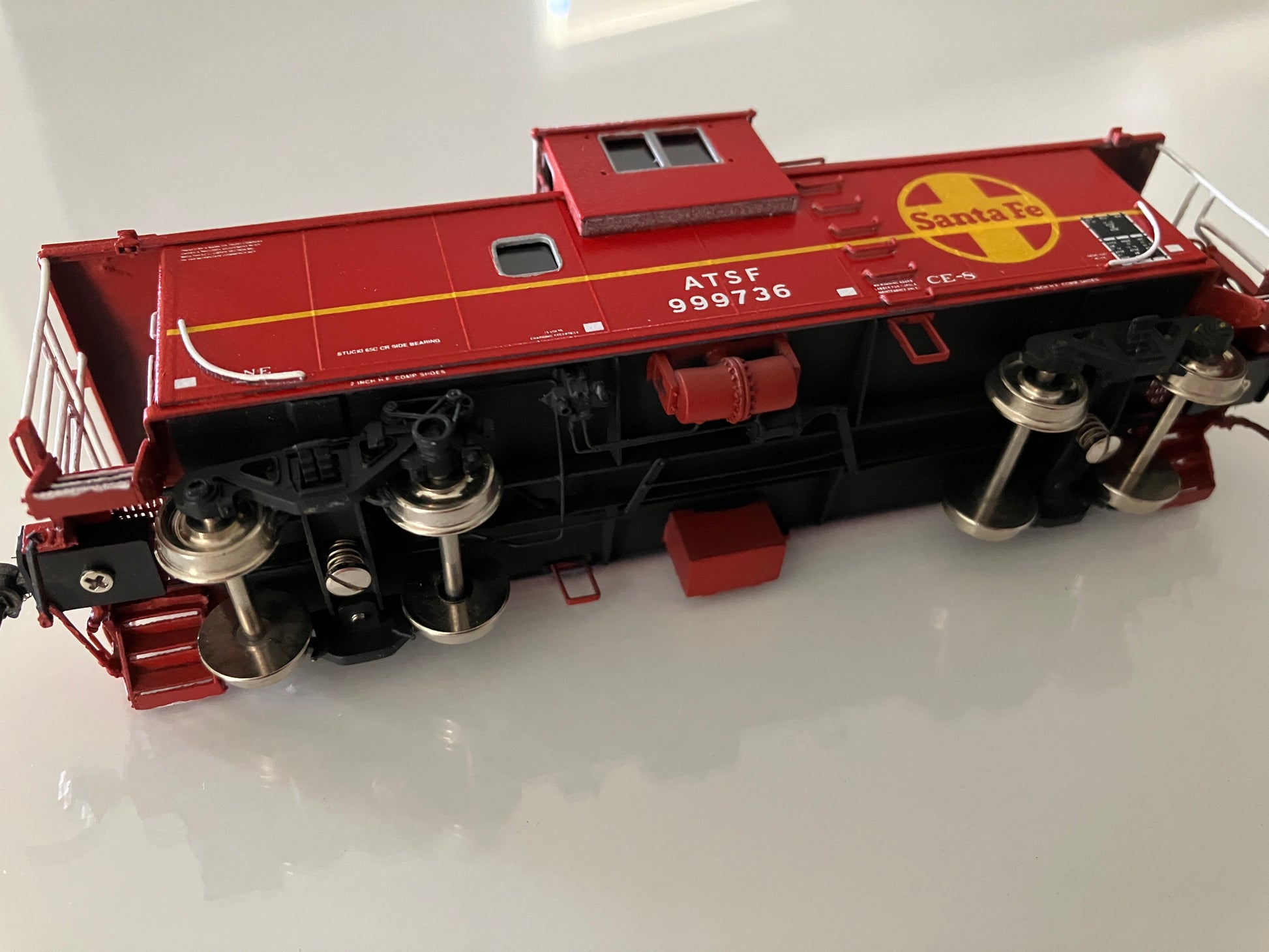 Santa Fe Wide Vision CE-8 Caboose with window glazing, Kadee couplers, metal wheelsets, custom painted by LSC Custom Shop |